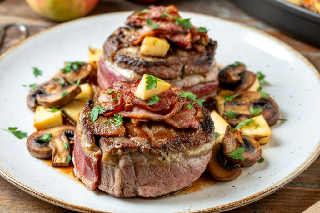 Okay, if you’re looking to wow your dinner guests—or just treat yourself to something seriously extra—this Filet Mignon Elegante is it. We’re talking tender, juicy steaks wrapped in bacon, topped with a buttery mushroom mixture, and then, yep… lit on fire with warm brandy. This recipe feels like a restaurant-worthy production, but it’s surprisingly doable at home. Whether it’s a romantic date night, special celebration, or “just because,” this dish brings the drama (and the flavor). Let’s get fancy, shall we?