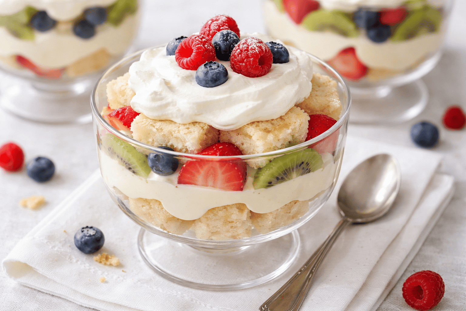 This dessert is like a story in a bowl. Every layer tells a different part. You get soft cake, sweet cream, and a burst of berry.