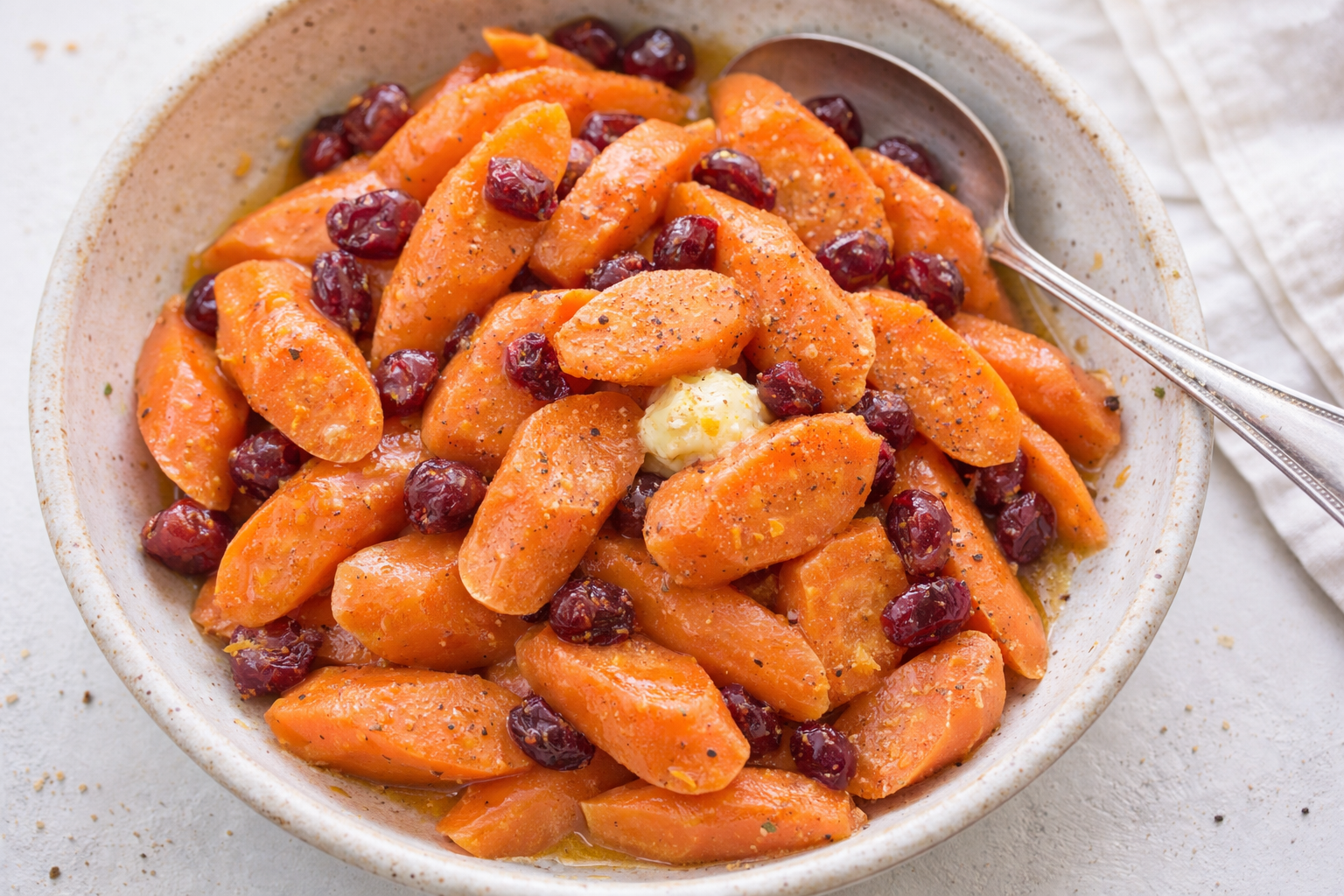 This recipe is a happy little dance in a pan. It’s quick, but feels special. We’ll cook the carrots until they are just tender. Then we’ll make a shiny, sweet glaze. The cranberries pop with a little tart surprise. I still laugh at the first time I made it. I ate the whole pan myself!