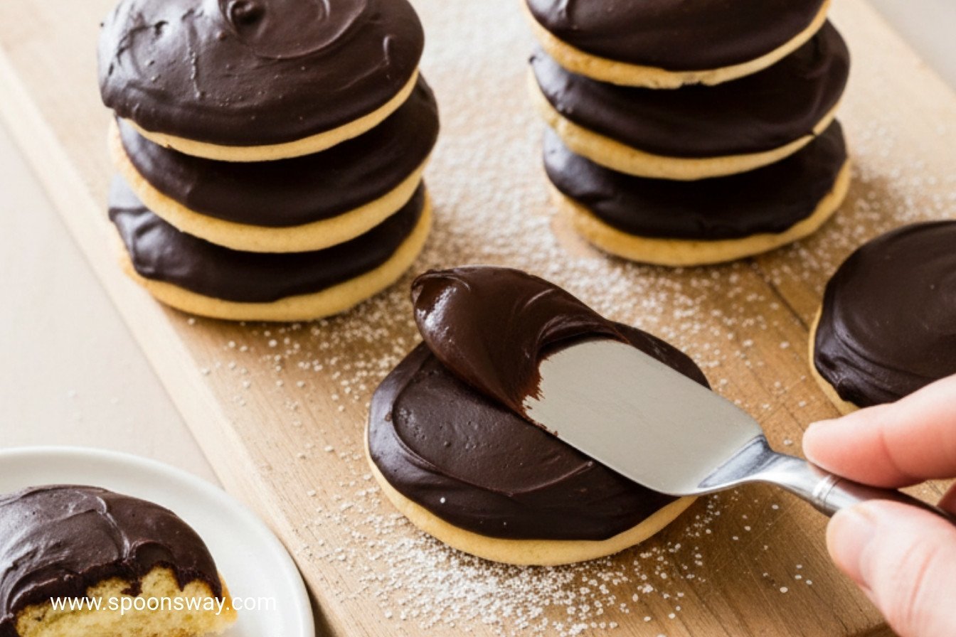 Step 5: The frosting is the magic part. Melt the chocolate chips and cream together. Do this gently in the microwave at half power. Stir it until it’s smooth. Then whisk in the cocoa, sugar, and vanilla. It will be thick and glorious, like brownie batter. Flip your cooled cookies over. Spoon a big mound of frosting on each flat bottom. Let them sit for about three hours. The frosting will set into a perfect, fudgy cap. Patience is a baker’s secret ingredient.