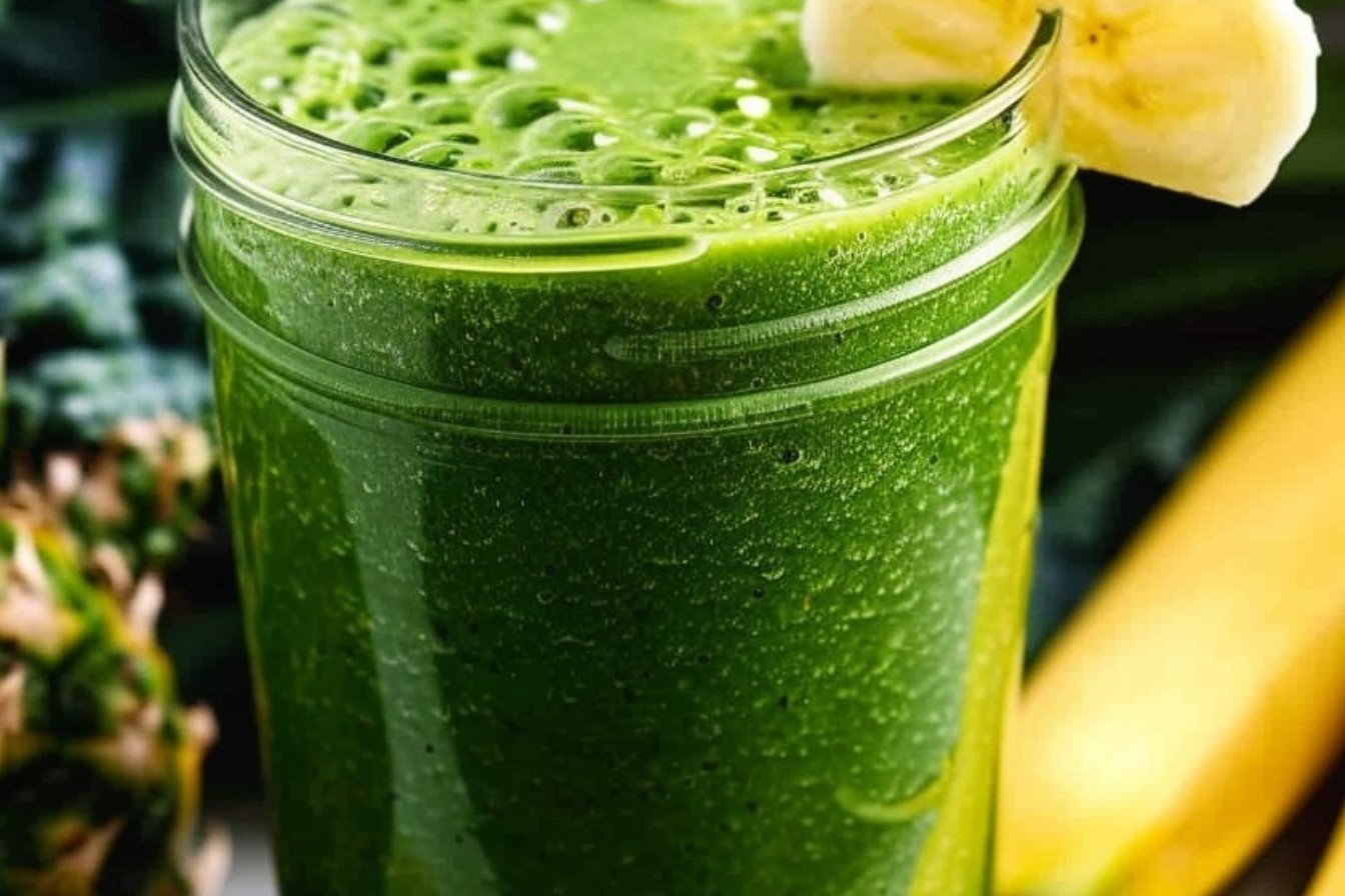 A refreshing and nutritious green smoothie packed with kale, apple, mint, and pineapple for a healthy start to your day.