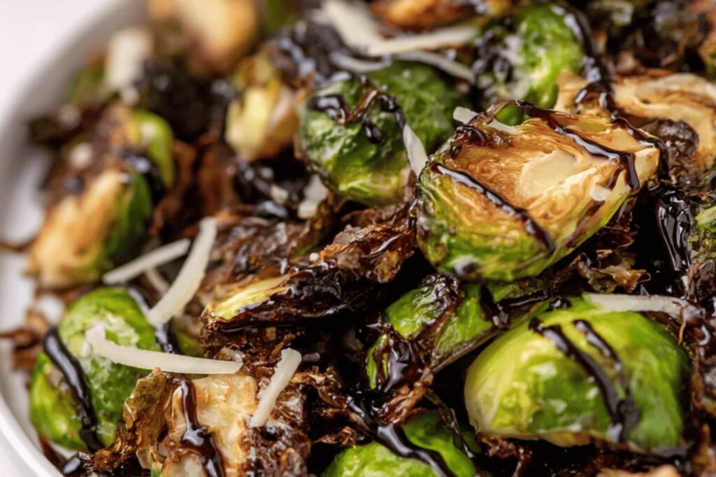 • Crispy Air Fried Brussels Sprouts with Balsamic & Parmesan