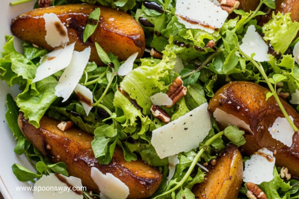 Pan Roasted Pear Salad with Parmesan and Pecans