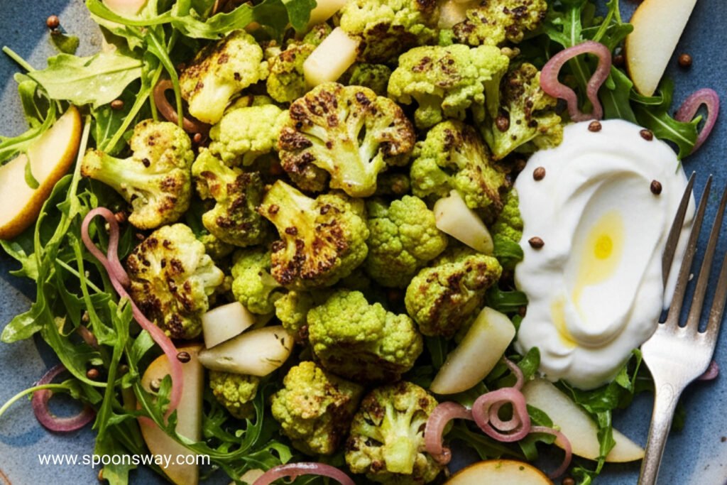 Roasted Cauliflower Arugula and Pear Salad