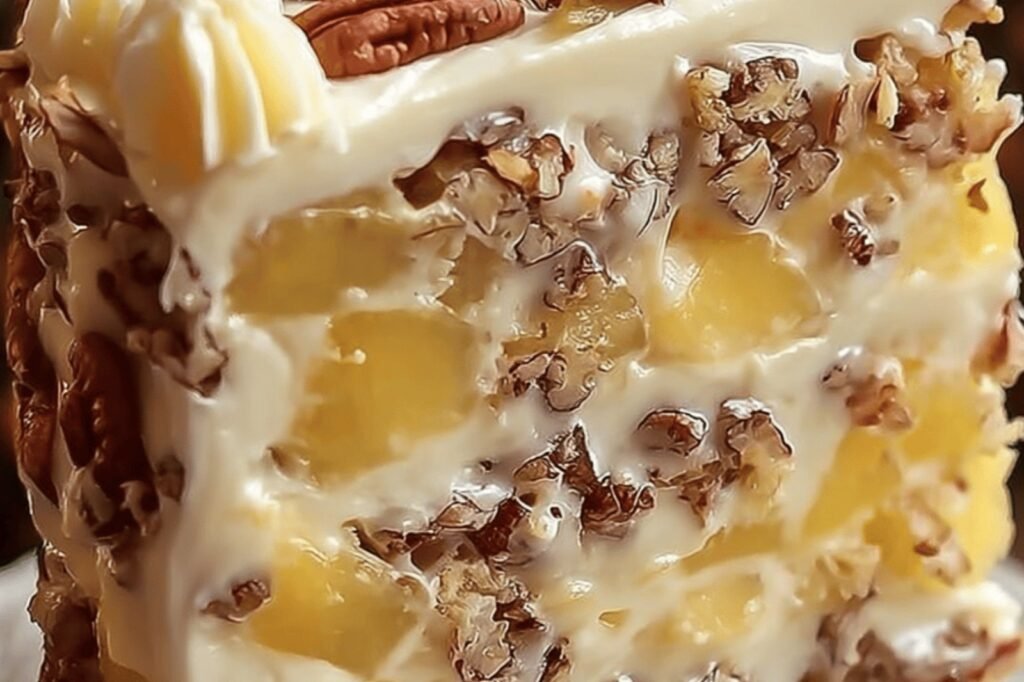 Creamy Pineapple Pecan Cake with Cream Cheese Frosting