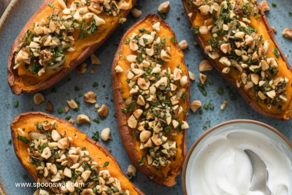 Hazelnut and Shallot Stuffed Sweet Potatoes