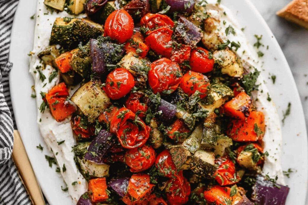 Experience the delightful contrast of creamy whipped feta and perfectly roasted vegetables in this flavorful dip.