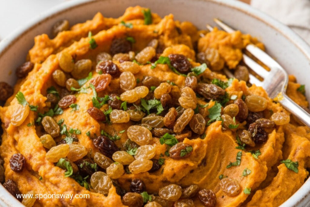 Mashed Sweet Potatoes with Curry and Golden Raisins