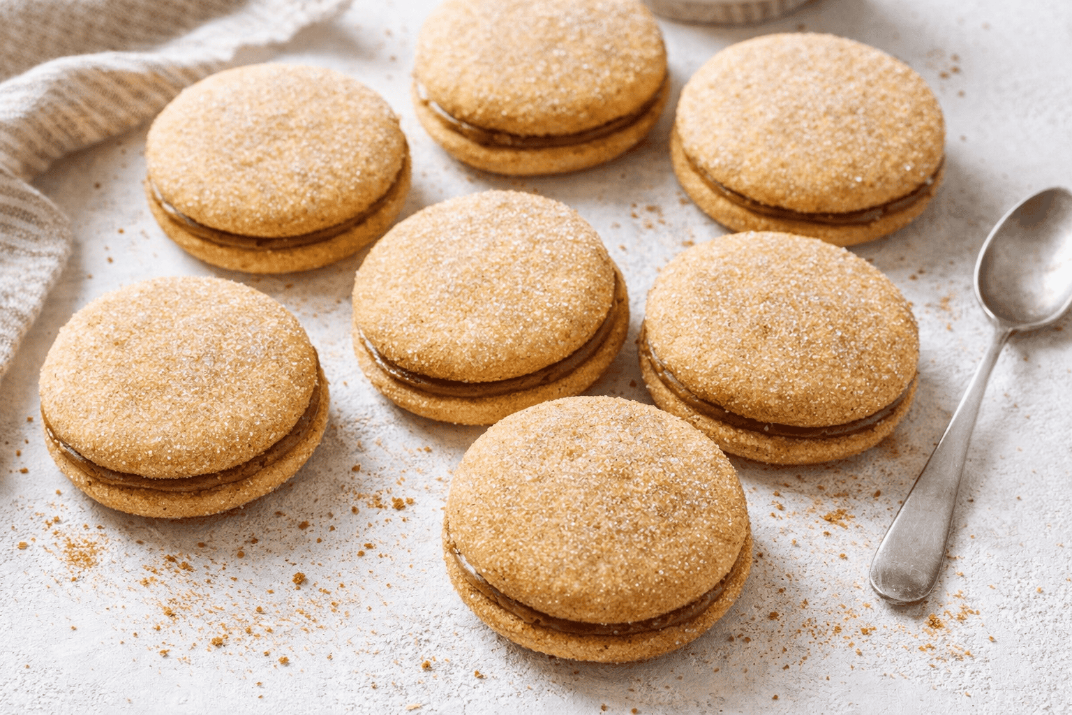 Hello, my dear. Come sit. The kitchen smells like my childhood today. I’m making my special sandwich cookies. They are sweet, spiced, and filled with creamy caramel.