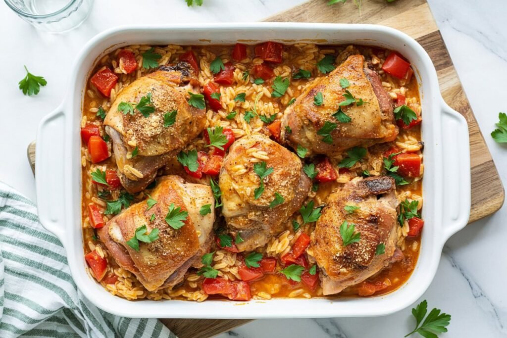- Place the browned chicken into the prepared baking dish.