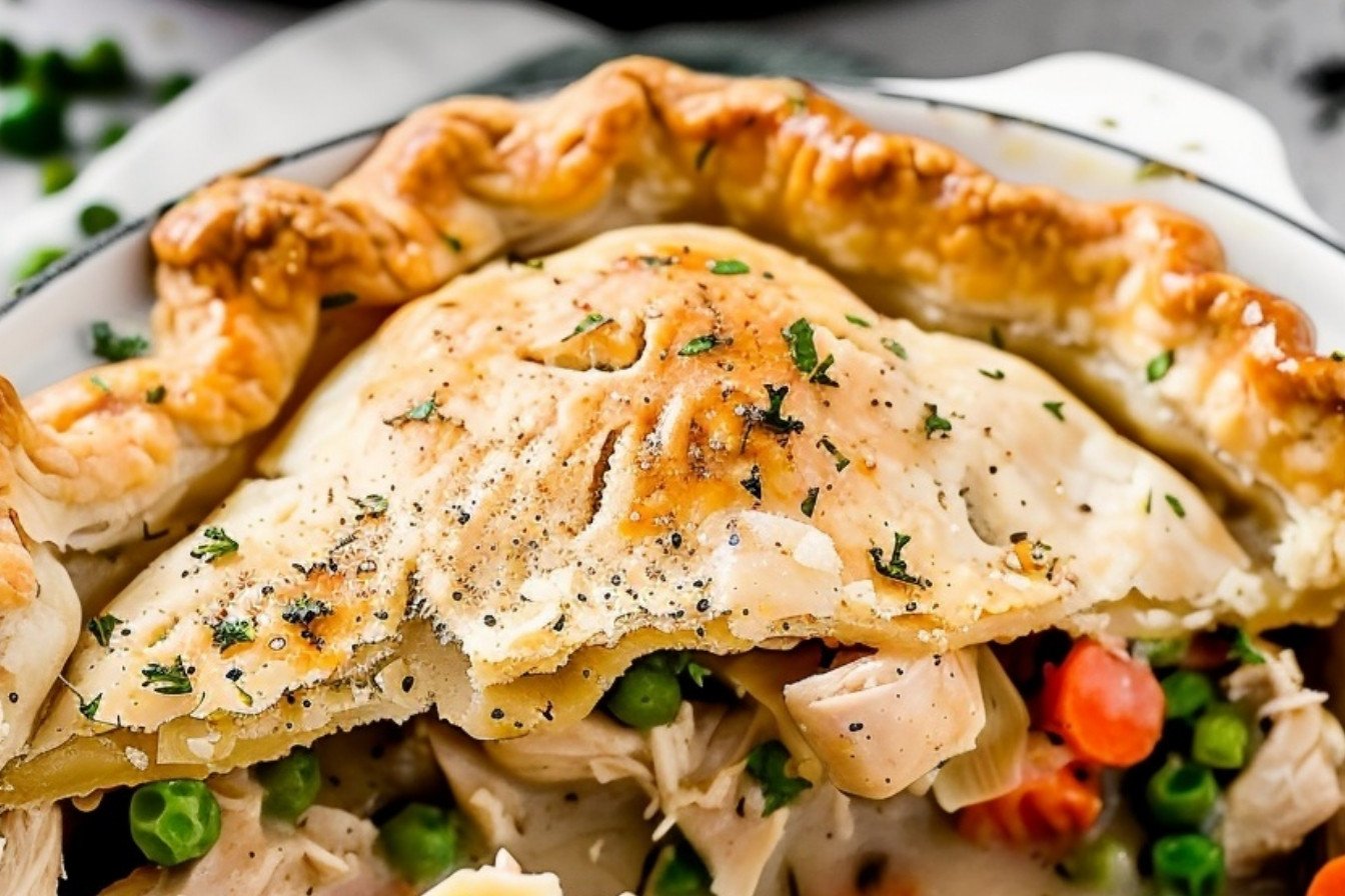 A classic comfort food with a flaky, golden crust and a creamy, savory filling of chicken and vegetables.