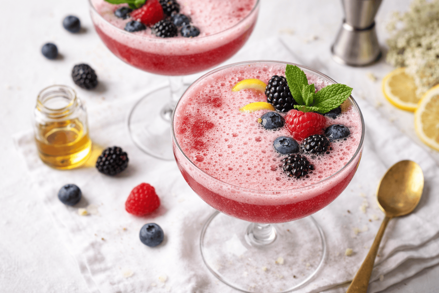 A vibrant and elegant cocktail blending muddled berries, floral elderflower liqueur, and crisp sparkling wine.