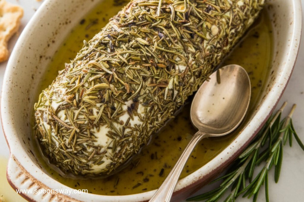 • Step 3: Time for the pretty part! Spread your herbes de Provence on a plate. Unwrap your firm cheese log. Now roll it gently in the herbs. Press lightly so they stick. It will look so beautiful and rustic. Let it sit out for one hour to soften. Just before serving, drizzle the last of your oil over the top. It makes it shine. What herb do you think gives it that special smell? Share below!