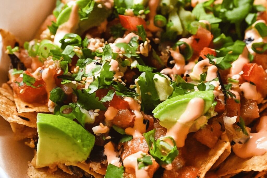 Step 4 Layer chips, tuna, spicy mayo, and toppings like avocado and jalapeños. Drizzle with unagi sauce and sprinkle sesame seeds. Serve immediately for the best texture.