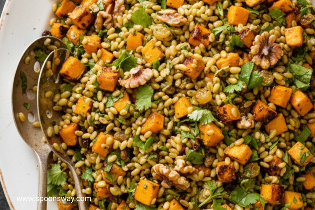 Vegan Freekeh Salad with Butternut Squash, Walnuts, and Raisins