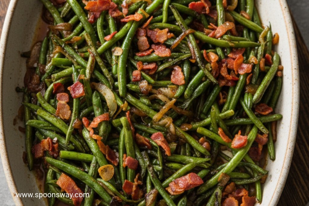 Hello, my dear. Come sit at the table. Let me tell you about these green beans. They are not just any green beans. They are a memory on a plate. My own grandma taught me this dish. She always said food tastes better with a story. Doesn’t that smell amazing? The bacon sizzling is the best sound. It means something good is coming. This recipe is simple and full of flavor. It turns a simple vegetable into a celebration. I still make it every Sunday. It just feels like home.