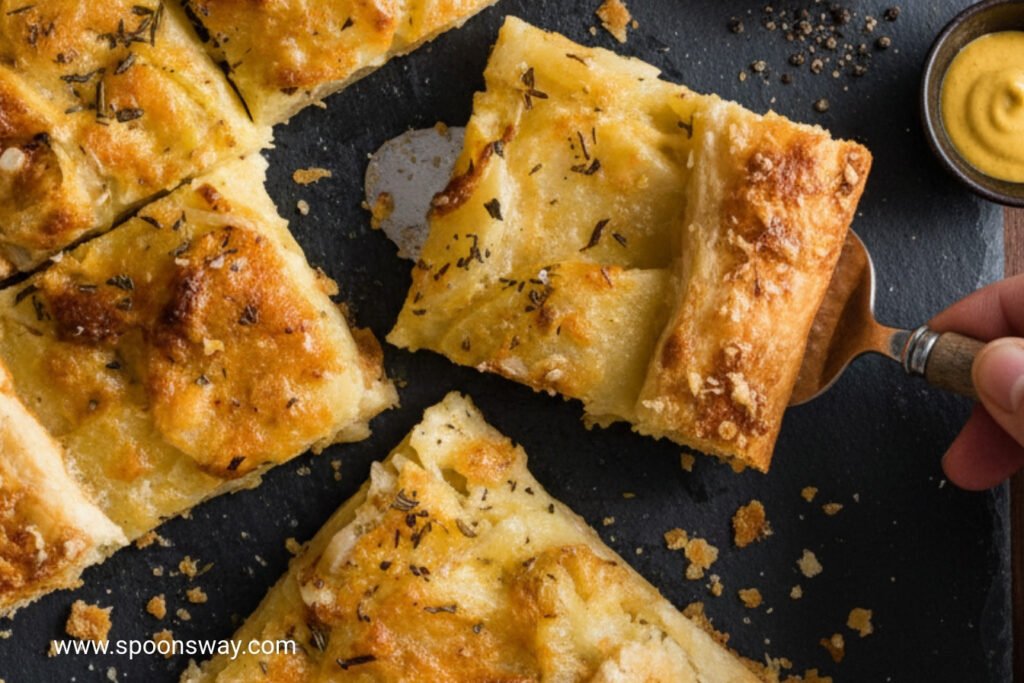 A rustic and elegant tart featuring a flaky, buttery crust filled with thinly sliced potatoes, Parmesan, and fresh rosemary.