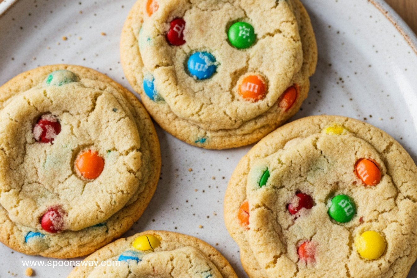 Hello, my dear! Come sit at the counter. I want to share my favorite cookie recipe. These are the big, chewy cookies you see in fancy bakeries. They are full of colorful M&M’s. I learned this recipe from my friend Betty years ago. We baked them for a school bake sale. The kids gobbled them up in minutes. I still laugh at that.