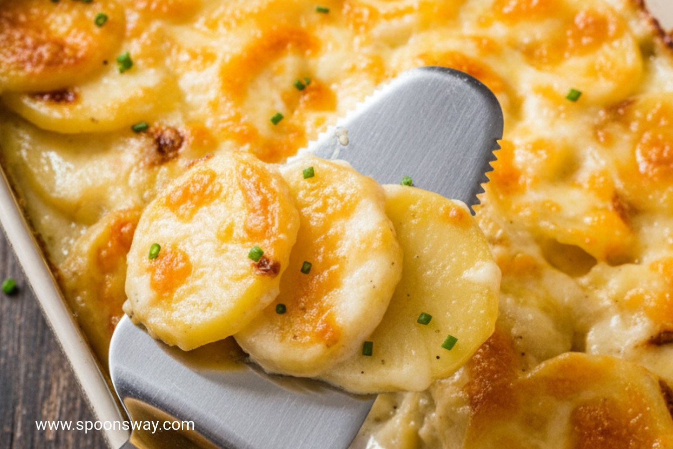 A rich and comforting side dish featuring tender potatoes baked in a creamy, cheesy sauce until golden and bubbly.