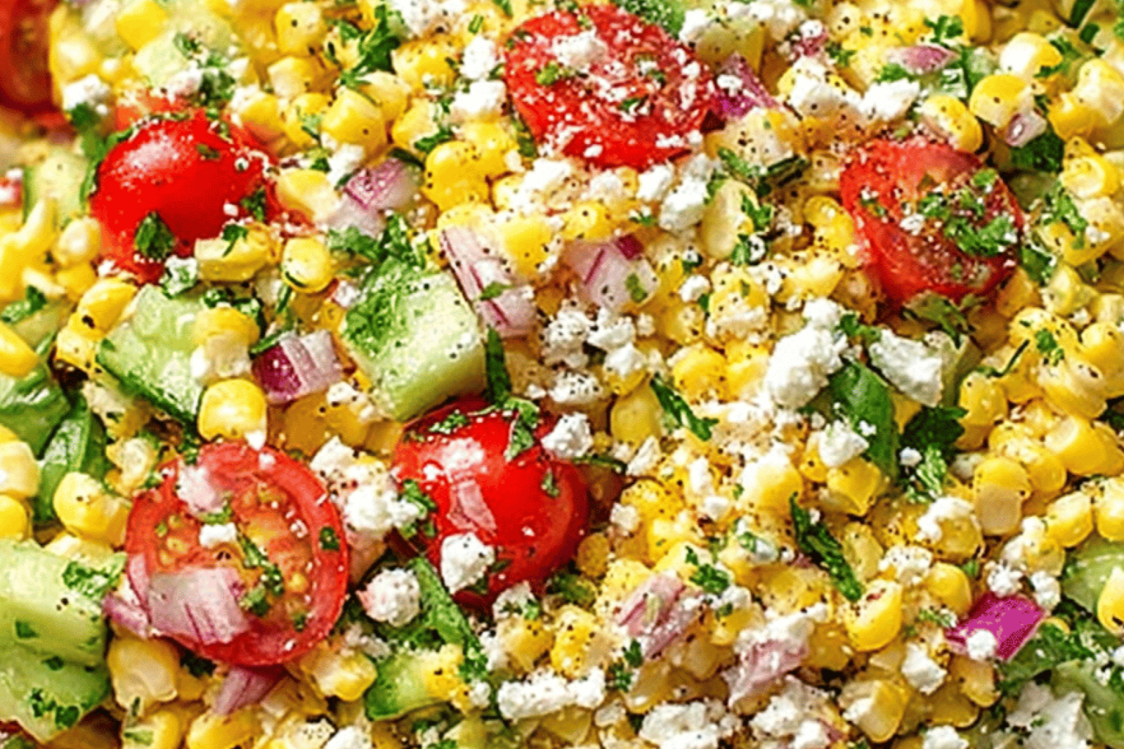 A vibrant and flavorful Mexican-inspired corn salad featuring fresh vegetables, Cotija cheese, and a zesty lime dressing.
